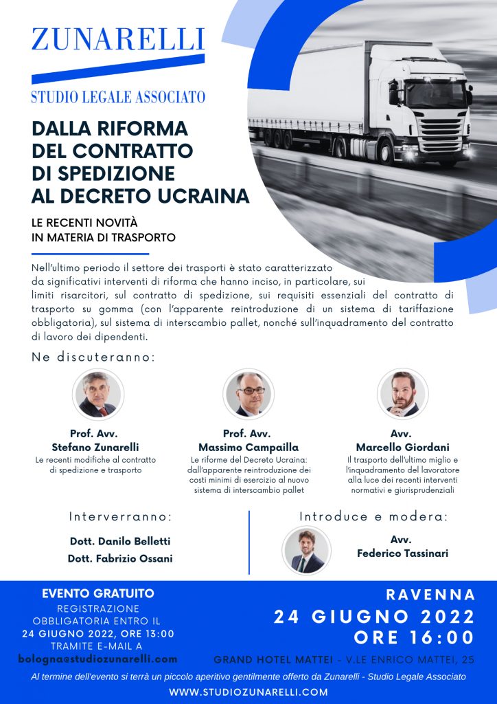 Dalla riforma del contratto di spedizione al Decreto Ucraina – incontro formativo del 24 giugno