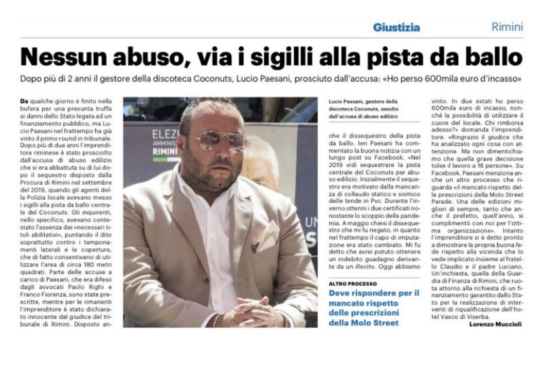 Annullato il sequestro dei tendaggi di un noto locale della Riviera romagnola: non era abuso edilizio