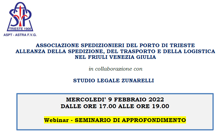 Evento del 14 gennaio 2022: Le nuove vie per il Porto Franco di Trieste