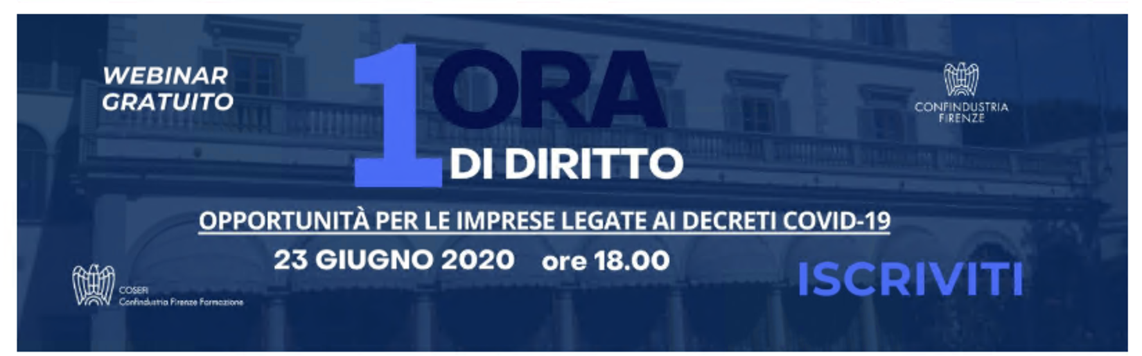 1ORA di Diritto – Confindustria Firenze – Opportunità per le imprese legate ai Decreti Covid-19