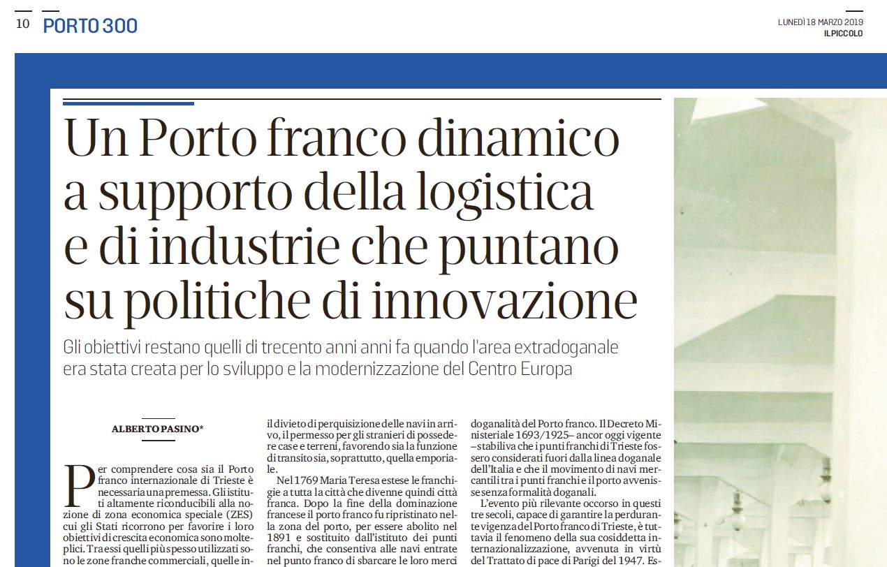 Porto Franco di Trieste: articolo di Alberto Pasino su Il Piccolo