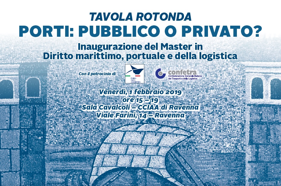 Ravenna, 1 febbraio 2019: Tavola rotonda “Porti: Pubblico o privato? Inaugurazione del Master in Diritto marittimo, portuale e della logistica”