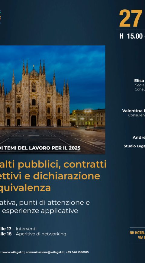 L’Avv. Andrea Giardini parteciperà in qualità di relatore al convegno “Appalti pubblici, contratti collettivi e dichiarazione di equivalenza: normativa, punti di attenzione e prime esperienze applicative”, un appuntamento di approfondimento dedicato alle novità e alle prime esperienze interpretative in materia di appalti e contrattazione collettiva organizzato da Wilegal. L’incontro che si terrà il 27 novembre…